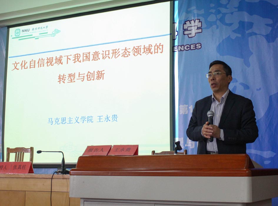 “人文社会科学名家讲坛”第155讲在包玉书科学楼10号楼209室举行。享受国务院政府特殊津贴专家、南京师范大学博士生导师王永贵教授应邀作题为《文化自信视域下我国意识形态的转型与创新》的报告。校党委委员、宣传部部长张真柱主持了报告会。a片