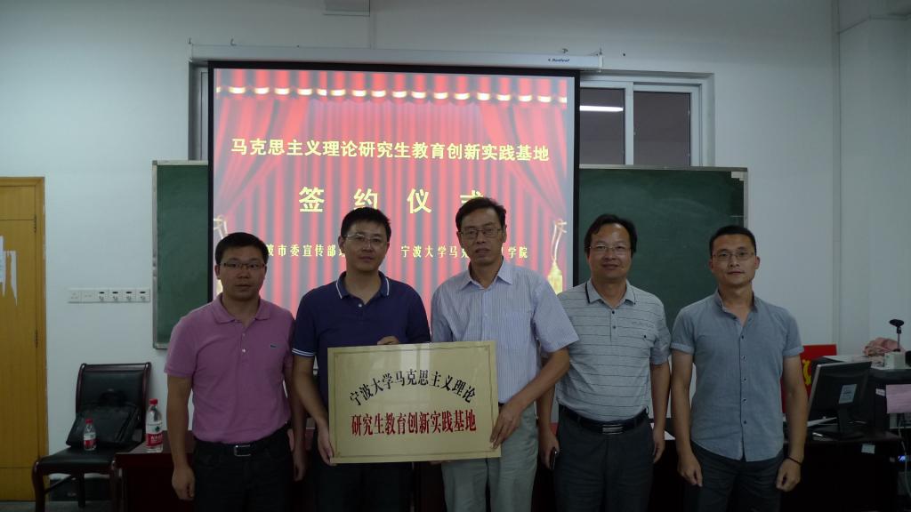 与宁波市委宣传部理论处共建的“马克思主义理论研究生教育创新实践基地”举行签约、揭牌仪式。市委宣传部理论处江再国处长与a片