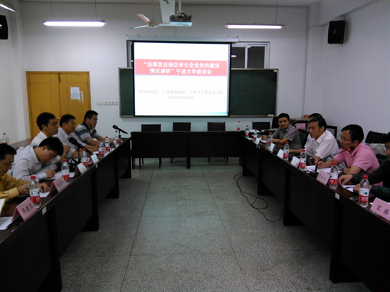 “沿海发达地区非公企业党的建设情况调研”是中国社科院立项的一项重大国情调研(基地)课题。课题组将此次将宁波作为重点调研的地区,一方面是对宁波地区发达的民营经济与非公企业党的建设已有实践探索的高度关注,另一方面,通过这种调研活动,有利于增进与当地专家学者建立起更密切的合作交流。宁波市社科院李建国副院长,党建研究所邢孟军所长陪同课题调研组组参加了本次调研座谈。