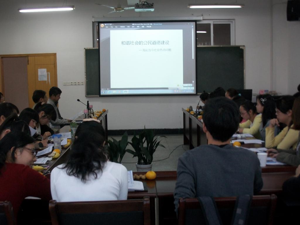 本次沙龙围绕2011级汪亚娣同学发表的《亚里士多德的德性观及其对当代道德教育的启示》一文展开讨论,2011级、2012级和2013级全体研究生参与沙龙。思政专业的同学经过前期的充分准备,向全体师生分享了各自对于当前社会公民道德建设的看法及意见,精彩的发言引发在场师生的阵阵掌声。