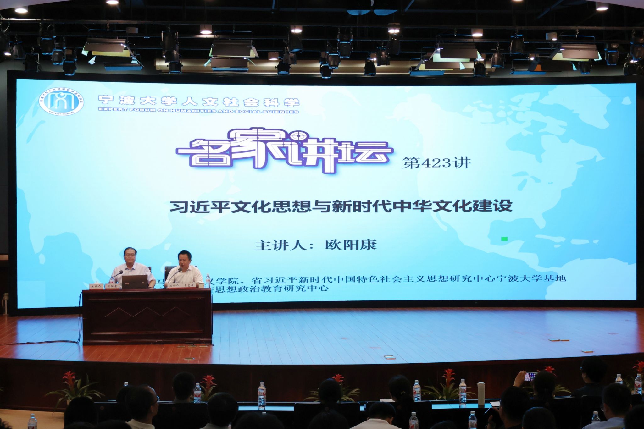 邀请,国家教学名师、华中科技大学国家治理研究院院长、哲学研究所所长欧阳康教授在真诚报告厅为马院师生以《建设中华民族现代文明的思想指南——习近平文化思想与新时代中华文化建设》为题作人文社会科学名家讲坛第423讲暨a片