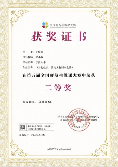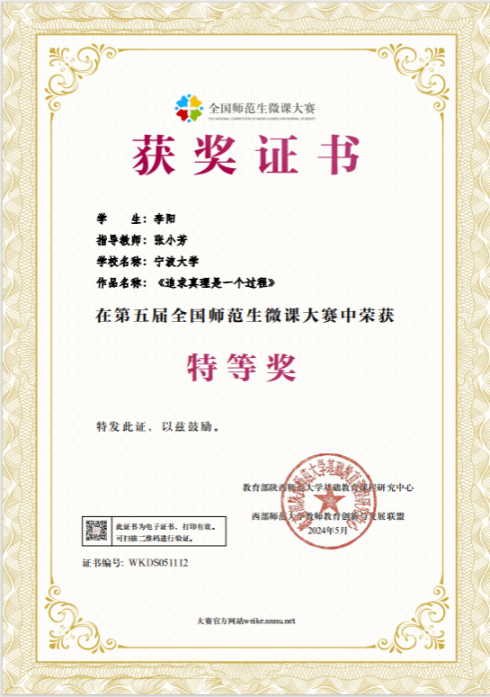 2021级思想政治教育(师范)李阳,凭借作品《追求真理是一个过程》(指导教师:张小芳)在全国众多优秀作品中脱颖而出,荣获特等奖;2022级思想政治教育(师范)王婧涵,凭借作品《云起故乡,流失文物回家之路》(指导教师:张小芳),获国家二等奖。