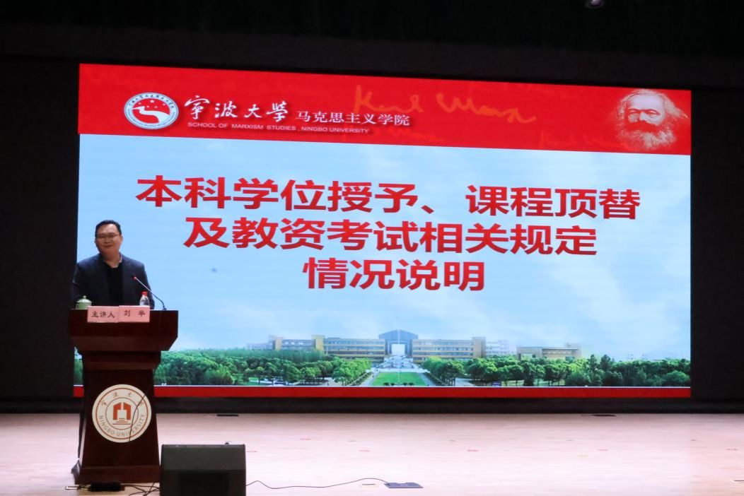 刘举系统阐释了本科学位授予标准与审核流程,就课程替代政策进行了专项说明,并着重强调教师资格考试作为职业准入门槛的关键性,要求全体学生严肃备考、尽早获取资质证书,同时针对毕业生提出应建立清晰的升学就业规划体系。