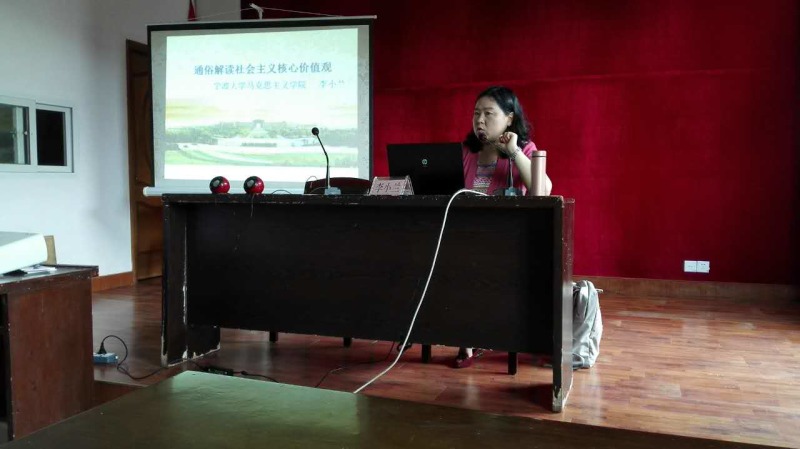 7月16日上午,a片 李小兰副院长带领研究生一行,走进舟山嵊泗县嵊山镇政府,开展关于“社会主义核心价值观”的主题讲座。嵊山镇副书记陈波主持本次讲座,并代表镇政府欢迎李小兰等一行的到来。参与本次讲座的有镇政府的基层干部、驻岛官兵、社区老党员等,李小兰副院长以“通俗解读社会主义核心价值观”为题,就社会主义核心价值观提出的背景、内涵、意义以及如何践行等多方面进行深入解读,并结合最近几天在嵊山当地考察、调研了解的情况、嵊山乡情民俗等进一步阐释了社会主义核心价值观的作用和意义,赢得与会人员的认同。