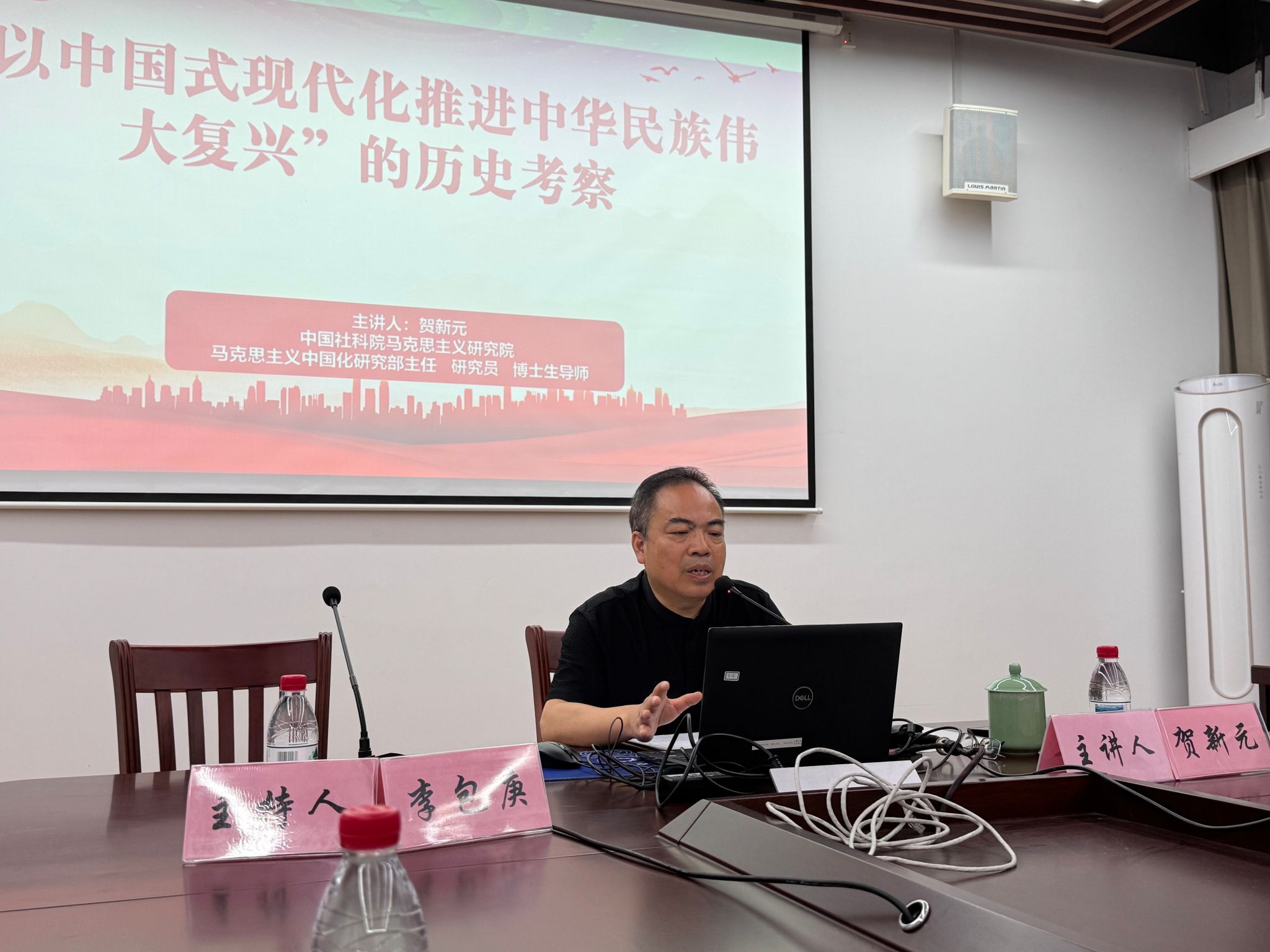 本次讲座围绕“‘以中国式现代化推进中华民族伟大复兴’的历史缘起、‘以中国式现代化推进中华民族伟大复兴’历史内容的演进、‘以中国式现代化推进中华民族伟大复兴’重大政治论断生成的原因分析”的逻辑链条展开。