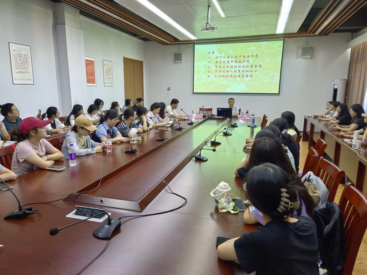 讲座上,丁晓强教授从为什么要创建中国共产党、谁在中国创建中国共产党、中共发起组的地位和重要性、中共创始人的秉性和初心、伟大建党精神五个方面出发,从学术视角、运用大量史料,史论结合生动讲述了中国共产党创建与发展的历史过程以及伟大建党精神的深刻内涵。丁晓强教授指出,百年前党的先驱们在“南陈北李相约建党”的历史背景下,以坚持真理、坚守理想为思想根基,通过中共发起组的组织建设,奠定了党的纯洁性与统一性基础。中国共产党在早期组织建设中始终保持着政治自主性,其章程明确提出“在中国组织无产阶级,实行社会革命”的战略目标。丁晓强教授深入剖析了建党初期多元政治力量博弈的历史图景,通过史料对比,深刻论证了中国共产党在理论准备、组织建设和实践路径上的先进性,彰显了马克思主义的理论优势和科学社会主义的强大命力。丁晓强教授着重阐述了伟大建党精神的深刻内涵以及当代价值,坚持真理、坚守理想,践行初心、担当使命,不怕牺牲、英勇斗争,对党忠诚、不负人民,是党始终保持生机活力的重要源泉。丁晓强教授的讲座政治性、学理性、历史性很强,对广大师生开展学术研究很有启发,极大增强了广大师生的党的意识和爱国主义意识。