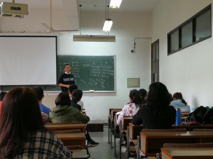 课堂上,王鹏飞老师综合采用了启发式、探究式等教学法比较了希腊哲学家柏拉图和伊壁鸠鲁的两种哲学路线。王老师以扎实的学科知识基础,将讲授的知识做到纵横贯通,将哲学思想与当今社会热点结合,并以小故事、小事例为导入,并结合自身的研究成果,深入剖析了两种哲学思想的联系与区别及各自的正反学术观点,引导学生思考及理解这两种哲学学派的理论精髓,从而增强了课堂吸引力,调动了学生学习积极性;课堂上师生也开展了一些积极有效的互动,课堂气氛活跃。
