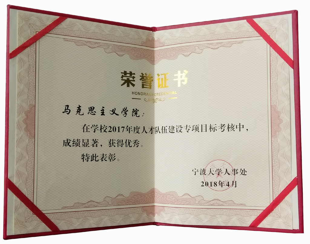 队伍建设相比往年取得了较大的突破。一是学院不断强化教学科研组织建设,积极推进人才引进工作。在过去的一年里,学院引进1名学术带头人、1名学术骨干、2名优秀博士,圆满完成当年任务。二是加大对教师的培养支持力度,2017年期间,学院有2位教师赴国(境)外进修、1位教师国内进修。三是加强教师的思想政治素质和业务能力,去年选送了2名骨干教师参加中央党校培训,10余名教师参加了省教育厅有关主题培训班,20余名教师参加了宁波市思想政治理论研究中心举办培训班。四是增强对青年教师的培育工作,并取得一定成果。曲蓉获“浙江省青年学科带头人”称号,司强获全国高校思想政治理论课骨干教师称号。同时,学院也非常注重加强师德师风建设,2017年学院共有5名教师分获宁波市优秀教师、优秀思想政治理论课教师称号。