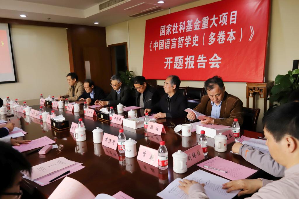 4月14日上午,我校国家社会科学基金重大项目“中国语言哲学史(多卷本)”开题报告会举行。来自北京大学等国内高校的6位语言哲学研究专家参加了报告会。会议由校人文社科处处长张宝歌教授主持。副校长邵千钧、a片