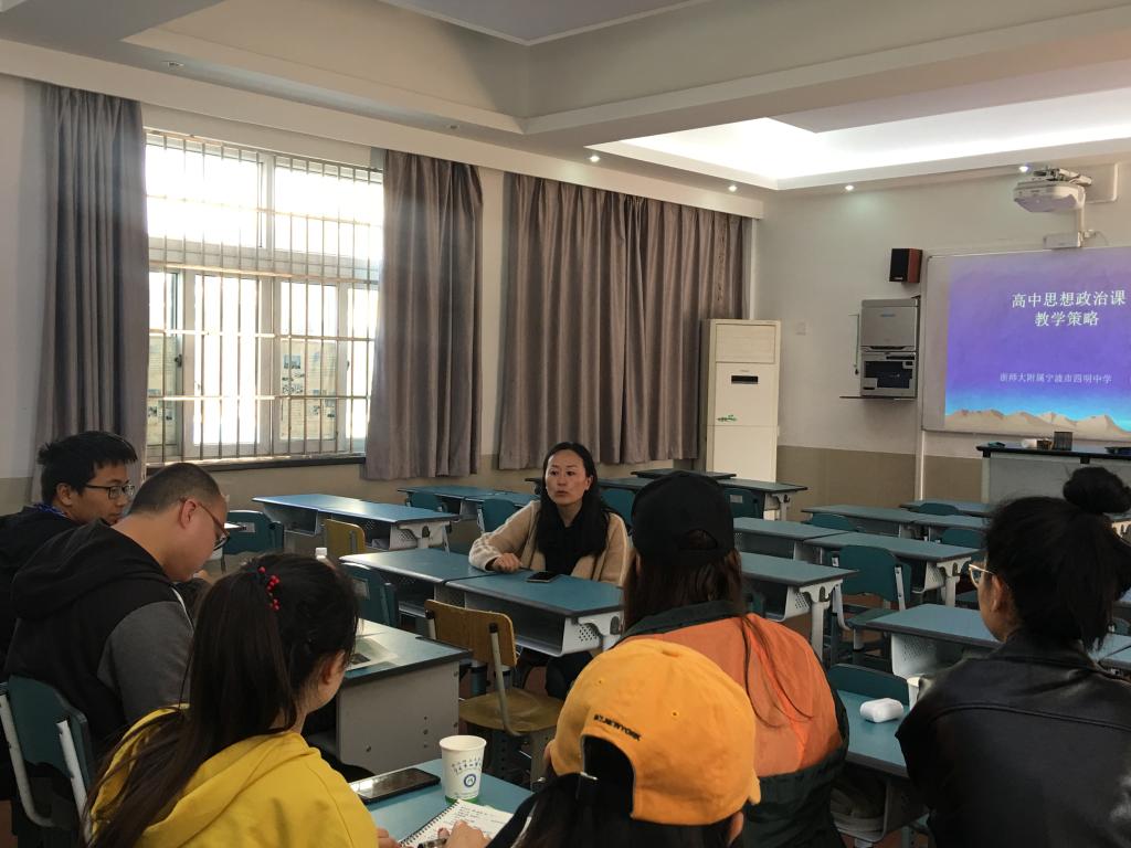 近日,a片 2016级思想政治教育专业全体同学专赴镇海中学、宁波二中、宁波四明中学等高中思想政治课堂分别倾听了宁波名师——包嘉珠、毕建红和许溶溶老师的精彩一课。听课结束后,三位老师还就思想政治课课堂教学设计、思想政治课课改情况以及如何做好一名优秀的思政课老师等话题,和同学们作了深度交流。同学们纷纷表示收获满满。