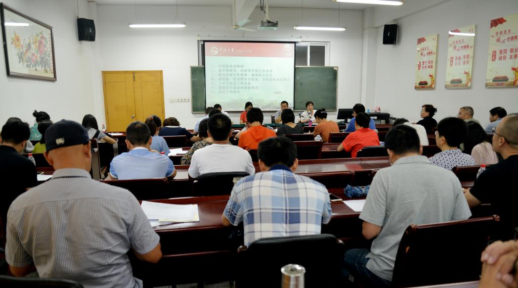 教职工大会在包玉书科学楼11号楼102室召开。会议传达了中共中央办公厅、国务院办公厅印发的《关于深化新时代学校思想政治理论课改革创新的若干意见》文件精神,布置了2019年下半年党政中心工作和学期初的常规工作。会议由院党总支书记刘友女主持。