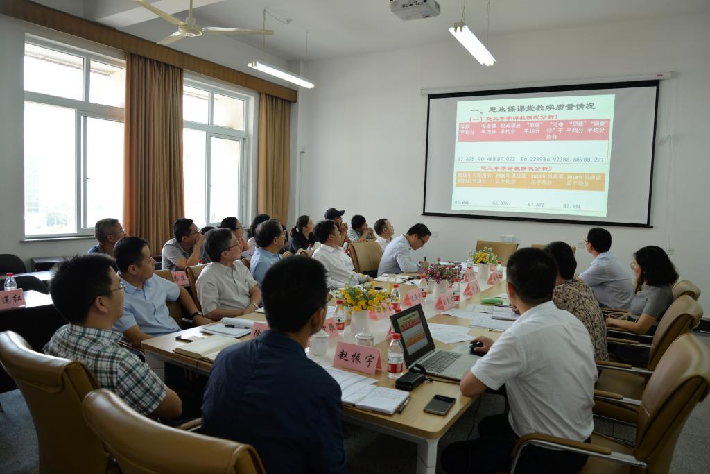 负责人结合学院贯彻落实全国教育大会精神和习近平总书记在学校思政课教师座谈会上的讲话精神,对近几年学校思政课开展情况和存在问题进行了总结梳理和深入分析,并结合中共中央办公厅、国务院办公厅近日印发的《关于深化新时代学校思想政治理论课改革创新的若干意见》和教育部“新时代高校思想政治理论课创优行动”工作方案的精神,重点就如何推进思政课改革提升教学质量汇报了具体思路。各系部室主任对课堂评价、教学方法、实践教学、教师的能力素养等方面提出了想法和建议。