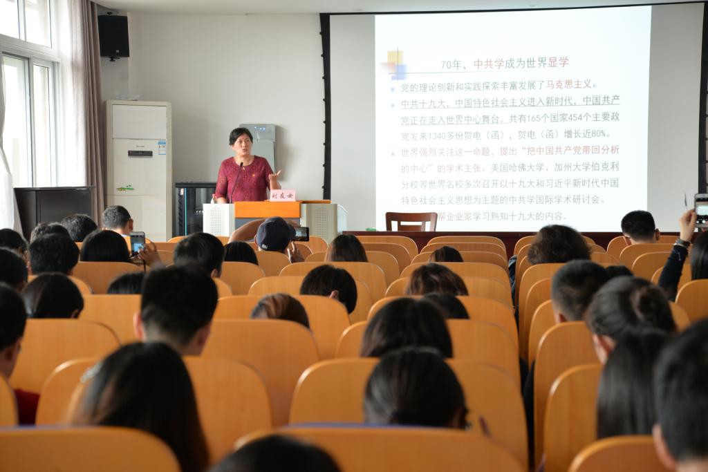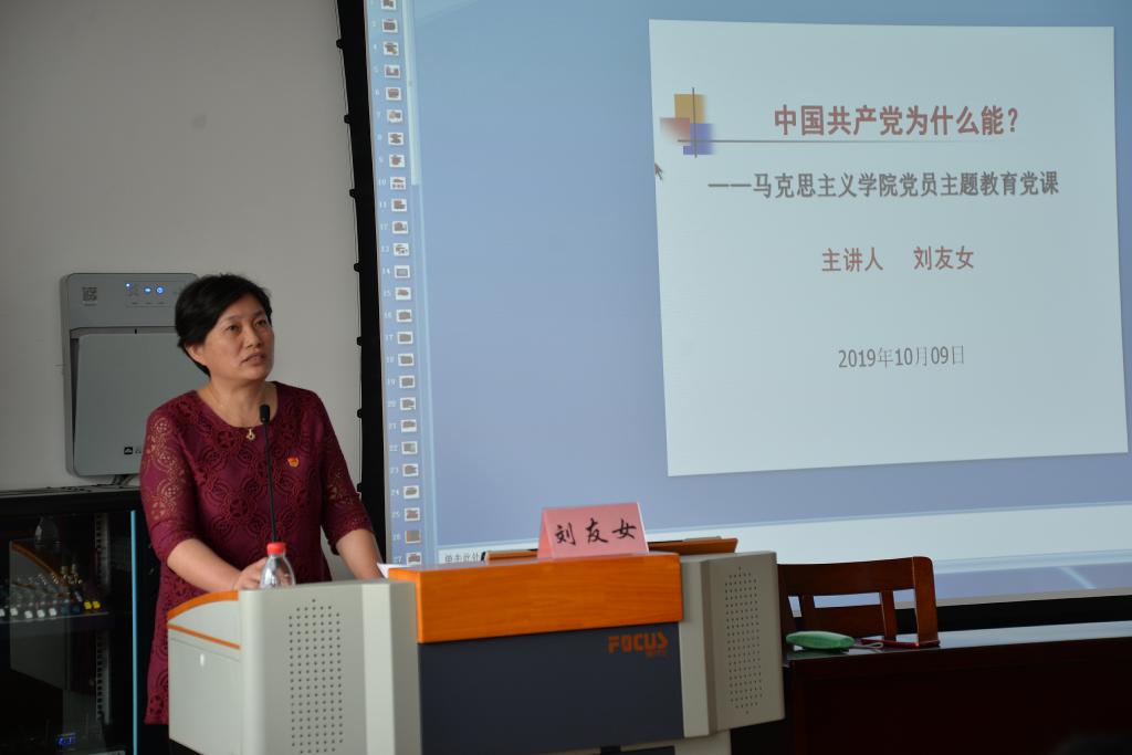 党总支书记刘友女以《中国共产党为什么能?》为主题,给全院95名师生党员上专题党课。校第一巡回指导组副组长张芝萍参加了党课。