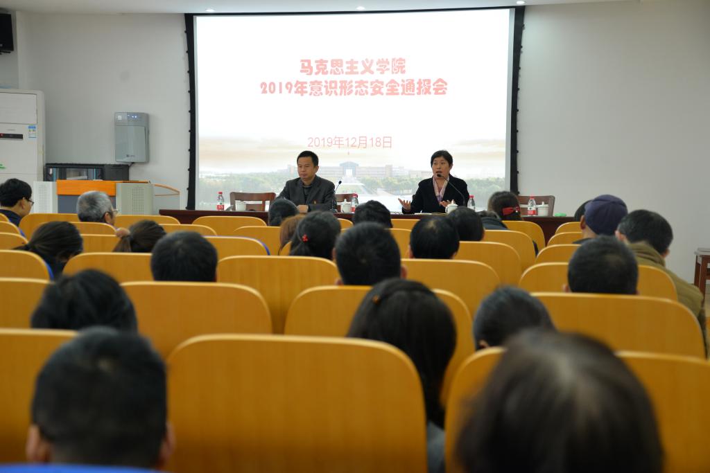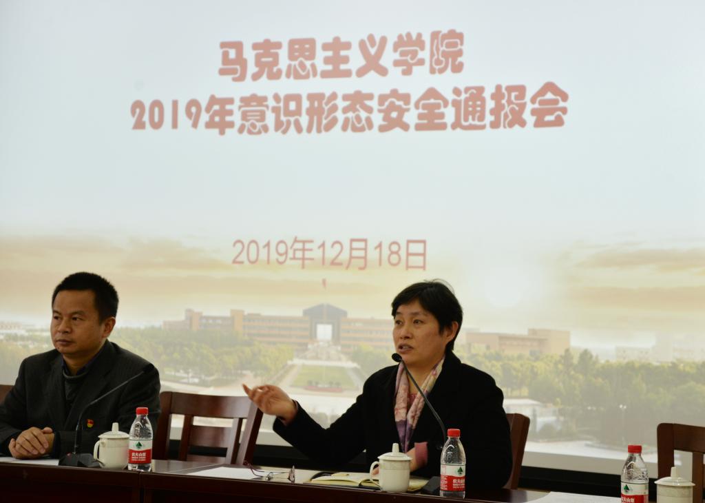 2019年意识形态安全工作专题会议召开。院党总支书记刘友女主持了会议,学院全体教职工参加了会议。