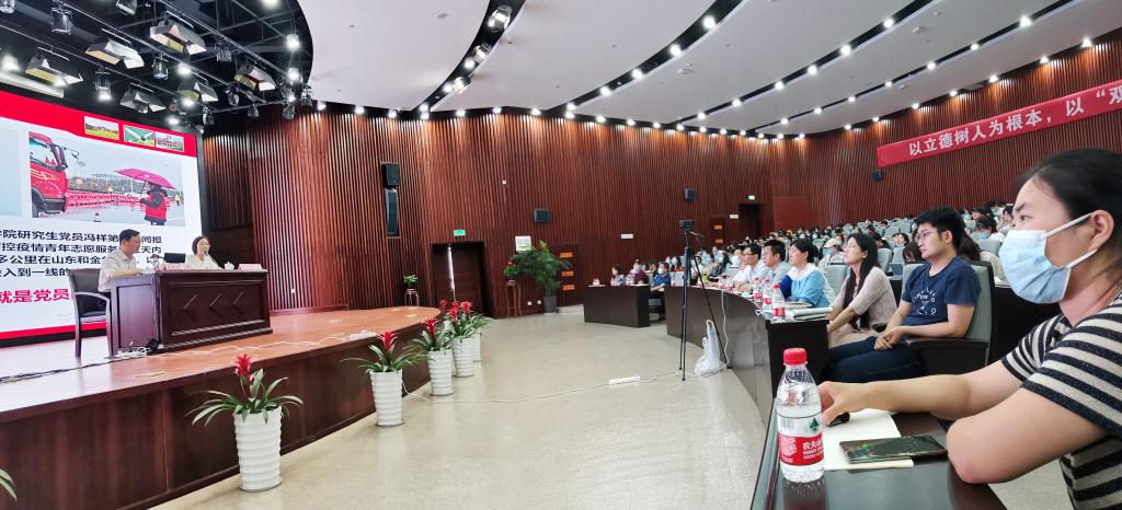 冯志敏副书记首先分析了当前全球疫情的严峻形势,并从坚持以生命与健康为本的人民情怀、彰显党的领导和社会主义制度优势、体现万众一心战胜疫情的中国力量等三个方面作了重点阐述。他用详实的数据、大量的图片、生动的案例对国内外抗疫的举措和成效进行了鲜明的对比,深刻剖析了党的集中统一领导的制度优势、集中力量办大事的社会主义制度优势、人民当家作主和现代治理的制度优势以及依靠科技进步和科学家力量的制度优势;深情赞扬了在抗击疫情中中国人民所展示出来的“大爱无疆、救死扶伤”的牺牲精神、“迎难而上,不怕牺牲”的英雄主义、“众志成城,守望相助”的集体主义、“国而忘家,公而忘私”的爱国主义、“团结一心,同舟共济”的合作精神等中国精神和中国文化;高度肯定了我校附属医院赴武汉医护团队、校友和全校师生所展示的精神风貌,为疫情防控和复学复课做出了宁大贡献。