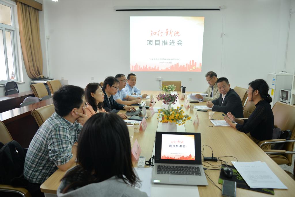 10月21日下午,宁波市高校思想政治教育研究中心“知行新说”实践教学体系项目推进会在312会议室举行。宁波市教育局宣德处副处长陆灵刚、宁波市高校思想政治教育研究中心主任李包庚、“知行新说”实践教学体系项目总负责人陈正良教授及四个子项目负责人a片