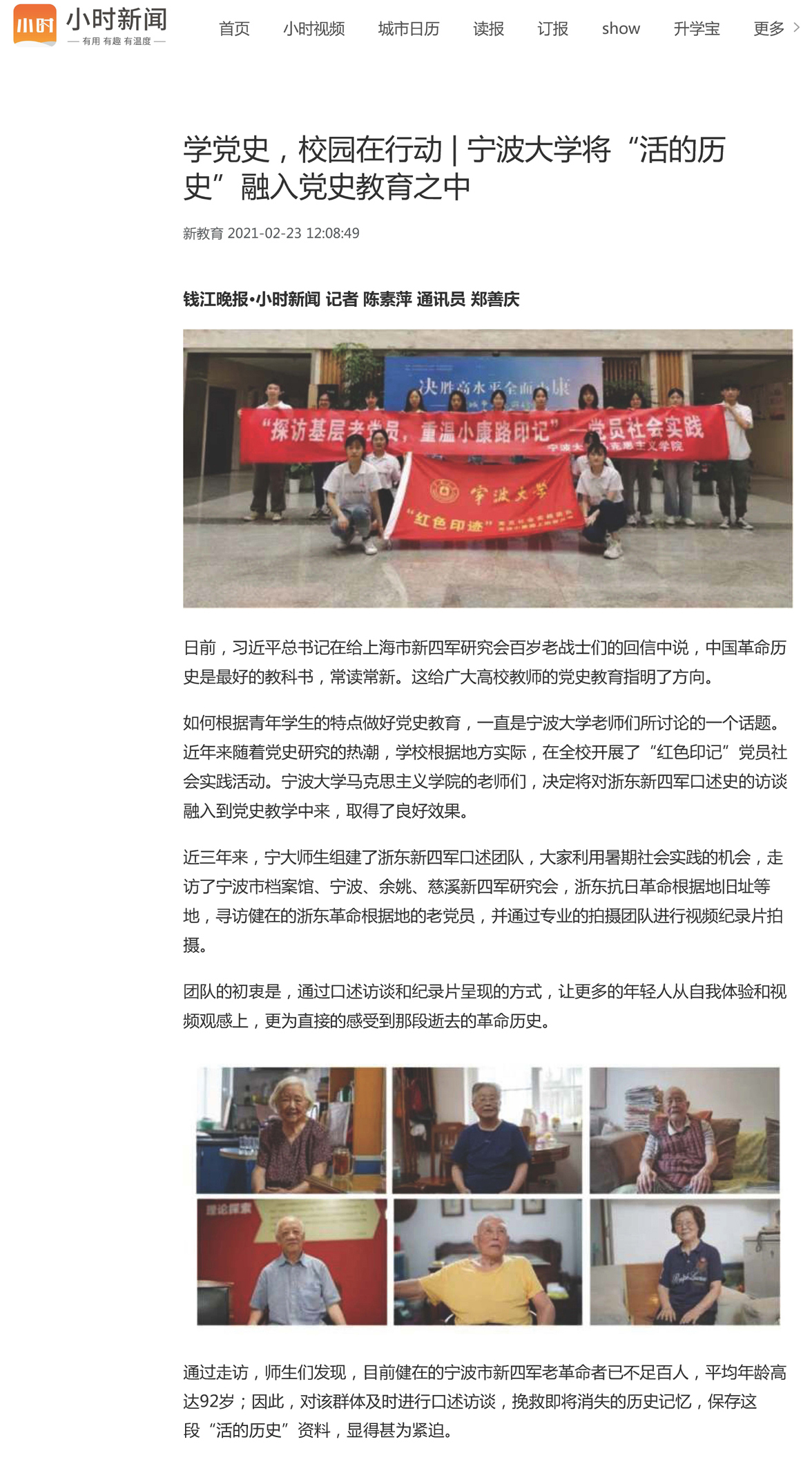 2月20日,农历牛年正月初九,党史学习教育动员大会在京召开,习近平总书记在会上强调,学党史、悟思想、办实事、开新局,以优异成绩迎接建党一百周年。党史学习教育,为何学、学什么、怎么学?高校大学生的党史教育又该如何开展?2月23日,《钱江晚报·小时新闻》对a片 的党史教育活动进行了报道……