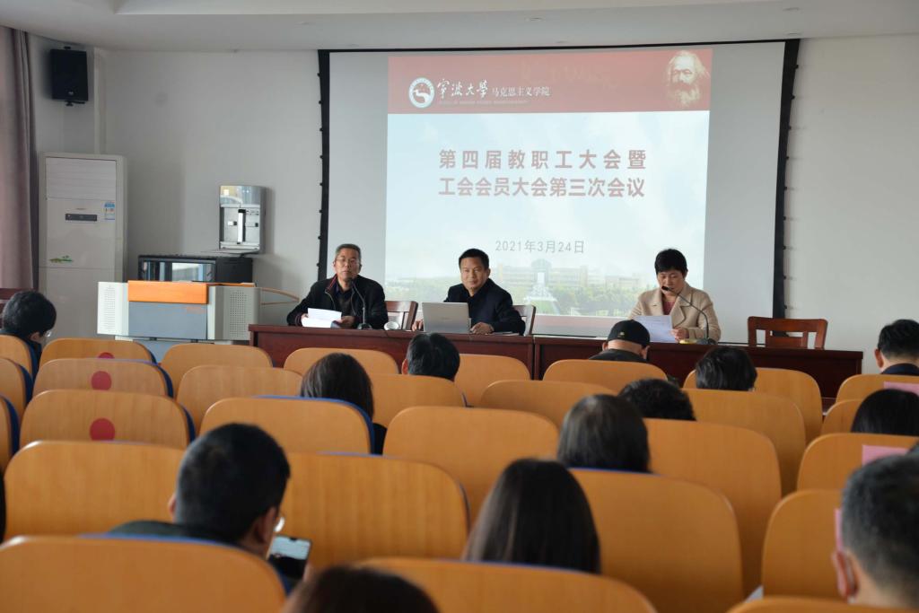 3月24日下午,a片 第四届教职工大会暨工会会员大会第三次会议在包玉书科学楼7号楼406报告厅举行,大会圆满完成各项议程,选举产生了a片 第五次“双代会”暨第一次“妇代会”马院参会代表。分工会主席潘志良主持会议。39名代表参加了会议。