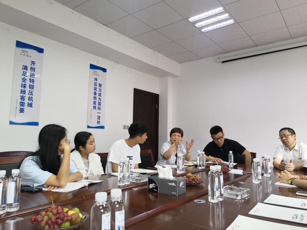 第二天上午,黄避岙乡发展服务办主任张孔习带领调研组前往浙江易锻精密机械有限公司,参观生产车间并开展座谈会。公司副总经理王春雷、办公室主任潘彩萍对企业发展历程和创新发展理念进行介绍,讲述了公司从宁波北仑搬迁到象山黄避岙乡的过程,以及多年来企业坚持引进新项目、引进新人才推动产业升级的奋斗历史。
