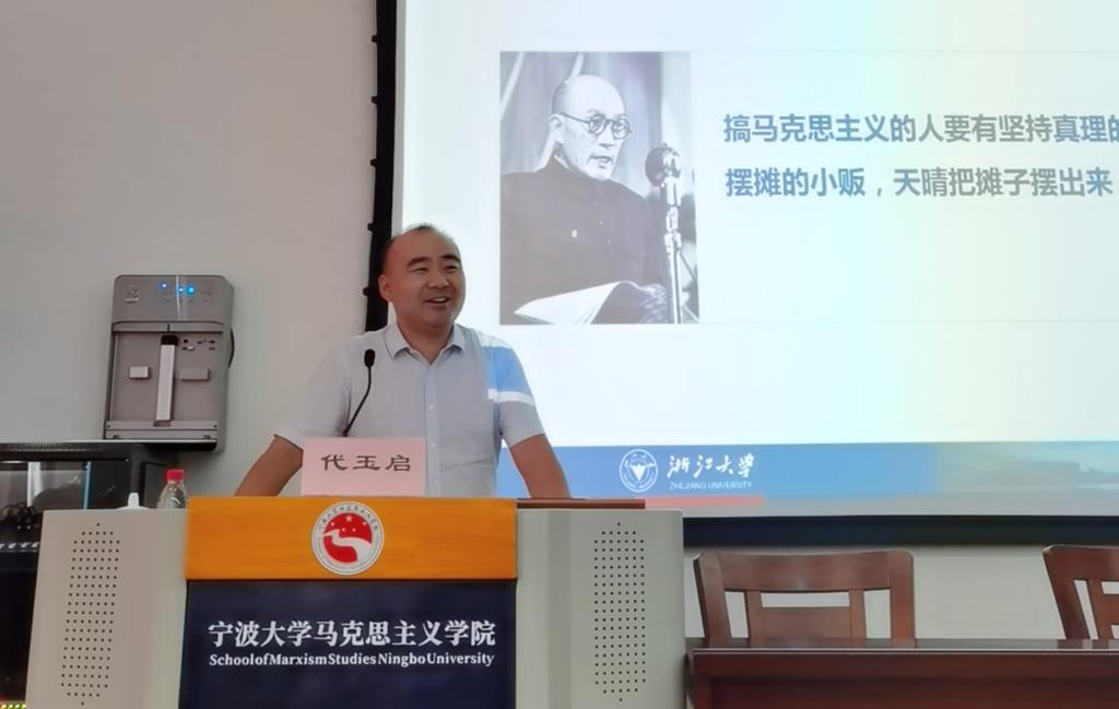 代玉启围绕“我们是谁”“学习研究的理路”“学习研究的目的”三个方面讲述了“我们该如何专业地学习研究新思想”。