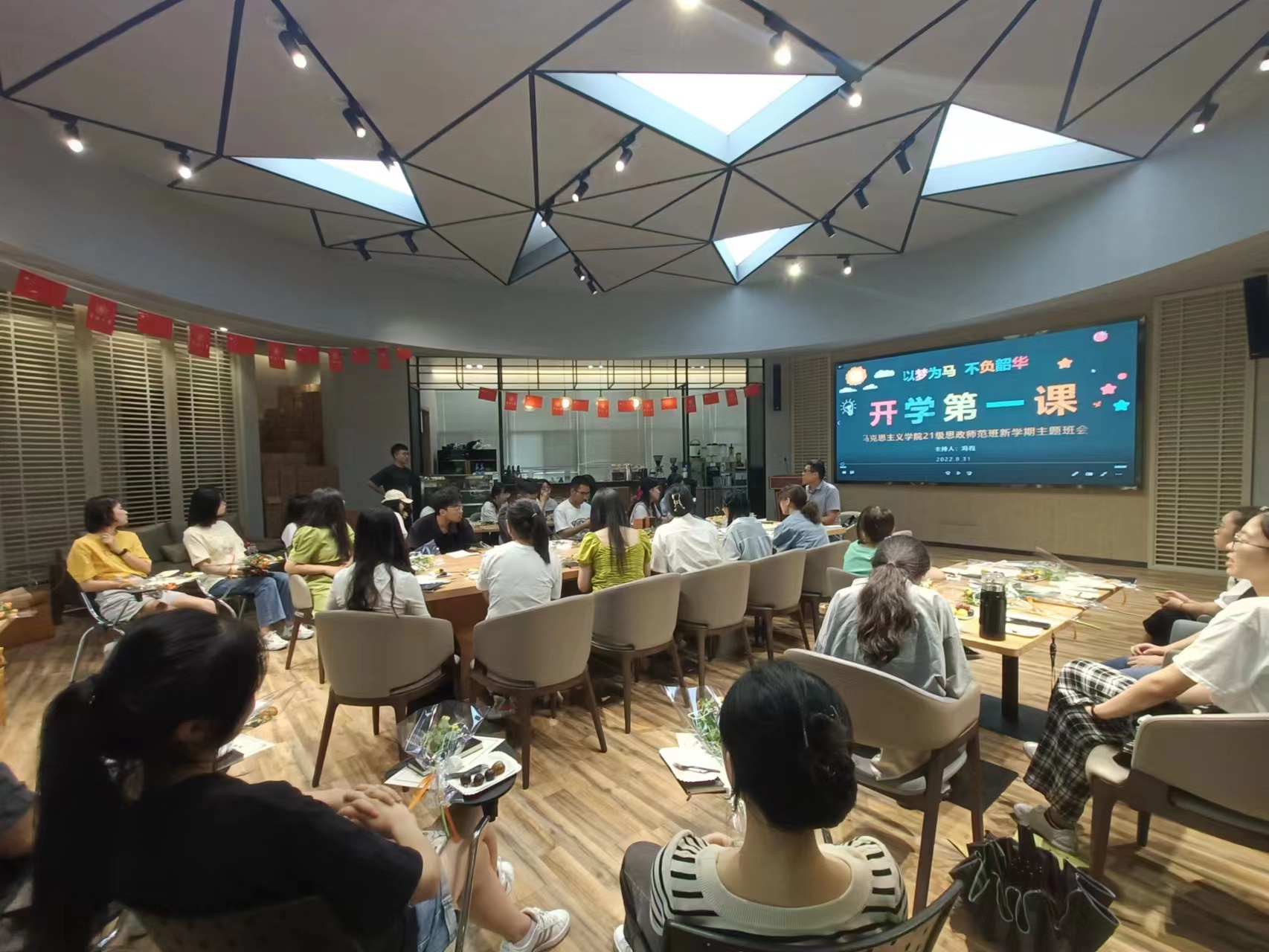 ,一切都焕然一新。‘开学第一课’让我受益满满,对未来更有规划。‘以梦为马,不负韶华’,希望接下来的学习中都能更上一层楼!”21级思政教育(师范)班的陈佳妮说。