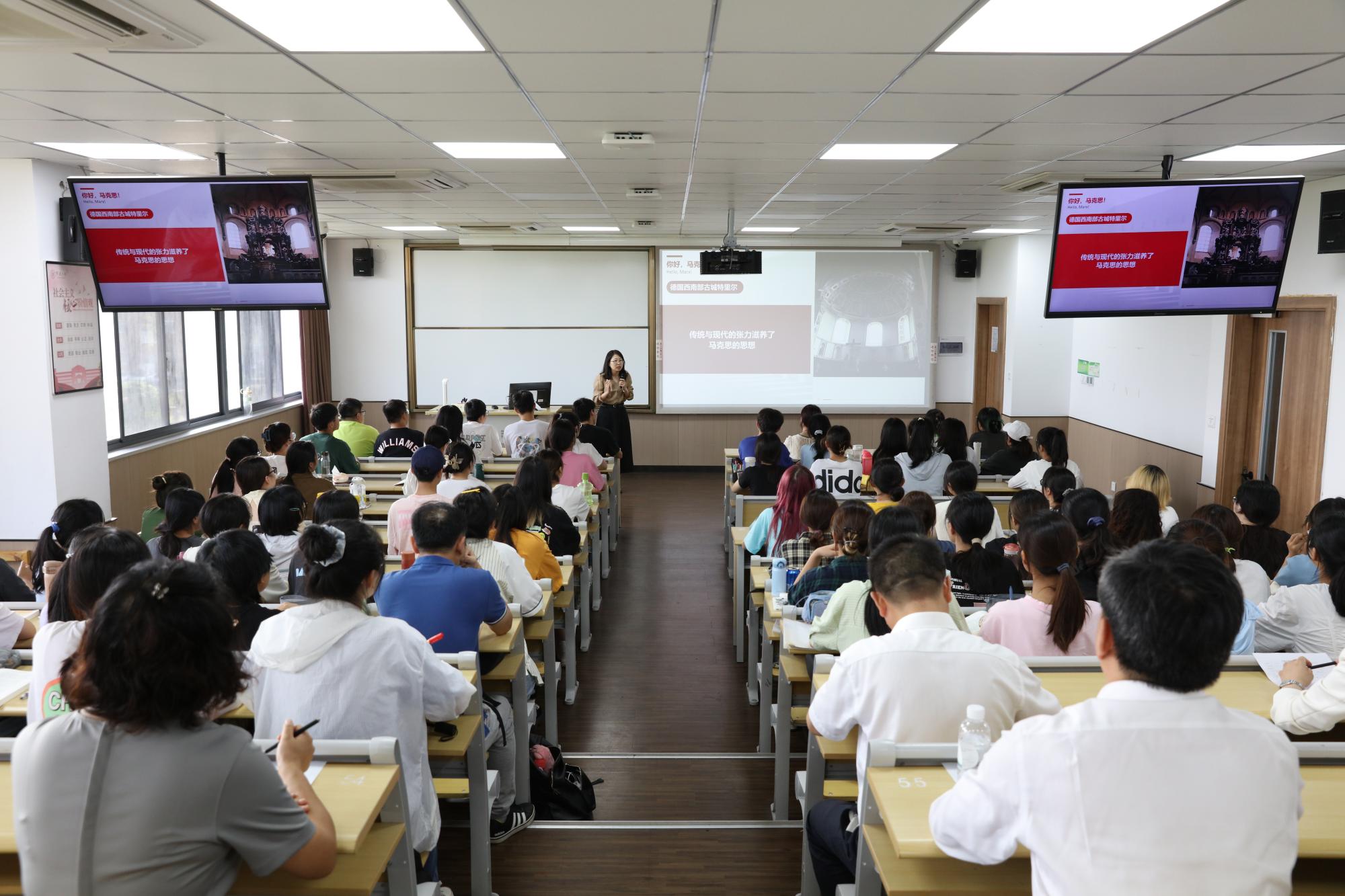 红色文化展览室,旁听了青年教师丁燃主讲的“马克思主义基本原理”思政课。