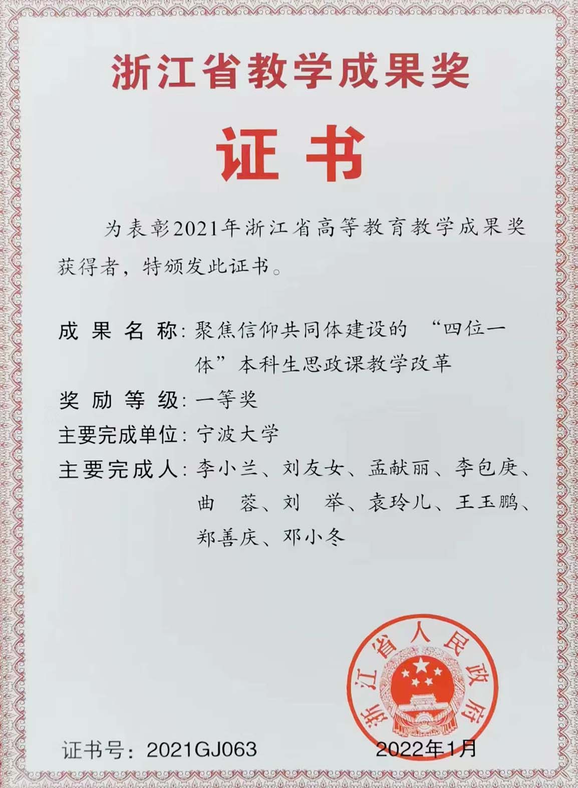 李小兰教学团队的《聚焦信仰共同体建设的“四位一体”本科生思政课教学改革》喜获一等奖。