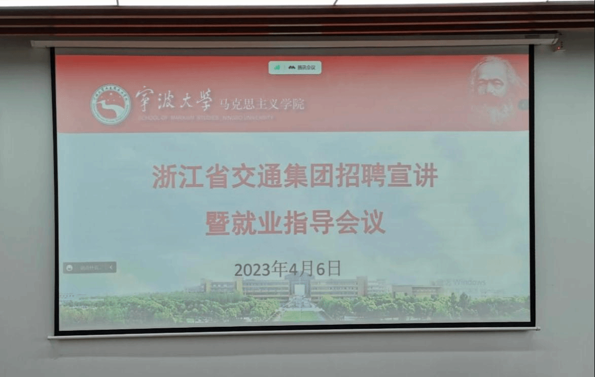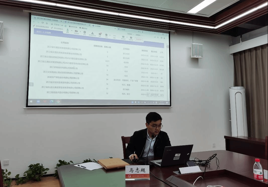 于近日与联建单位省交通集团宁波管理中心举办就业指导会。学院党委副书记吴莲红、省交通集团宁波管理中心相关人员、学工办助理徐涵琪和马院部分学生参与了此次会议。会议由辅导员赵怡楠主持,以线上线下相结合的方式同步开展。