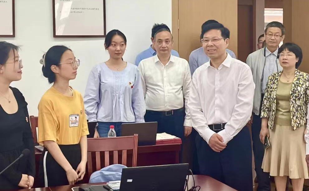 ,执行院长李包庚介绍了学院建设情况,钟关华仔细询问了学院专业建设、学生培养、博士点建设、生师比等方面情况,并参观了学院红色展厅,对学院取得全国五四红旗团支部等荣誉表示赞赏。钟关华还看望了正在举行“初心”宣讲团五四青年节专题活动的马克思主义青年教师和学子,钟关华详细了解了“初心”宣讲团的建设历史,取得的成绩。他说“‘初心’这个名字特别好,我们共产党人要永葆初心,我们的青年讲党的理论也要保持初心。”听闻宣讲团成立已有10年并形成了品牌,钟关华表示欣慰,勉励宣讲团牢记初心使命,推动党的创新理论飞入寻常百姓家。