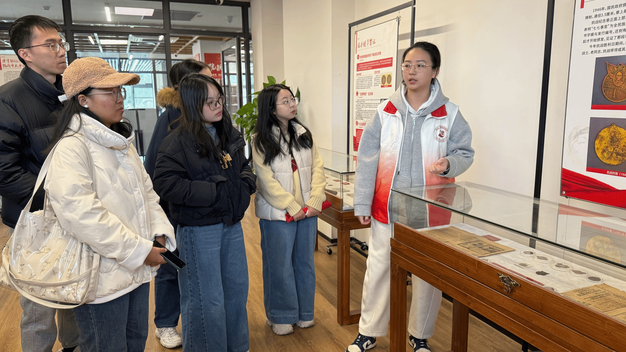 2025年11月28日上午,马克思主义中国化研究生党支部在甬江公寓7号楼精品展区开展十一月主题党日活动。本次活动以“红色行知录”为主题,融合历史寻访与理论研习,通过沉浸式观展与互动式研讨,引导党员在回望抗战历史中感悟精神力量、砥砺初心使命。