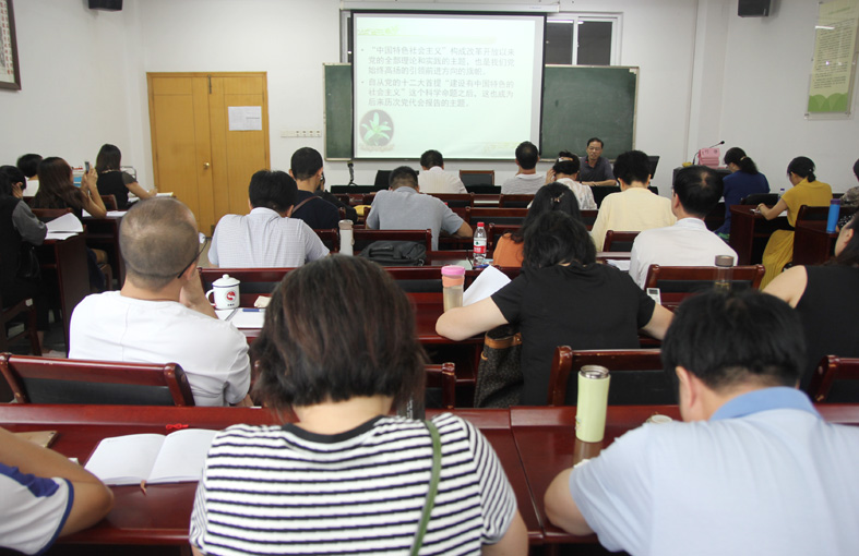 102会议室,学院院长陈正良教授作了《坚定中国特色社会主义道路自信》的专题报告。此次报告会作为学院理论学习中心组扩大会,同时也是全院党员学习会、提升思政教师素质的培训讲座。院党总支书记方晓春主持了报告会。