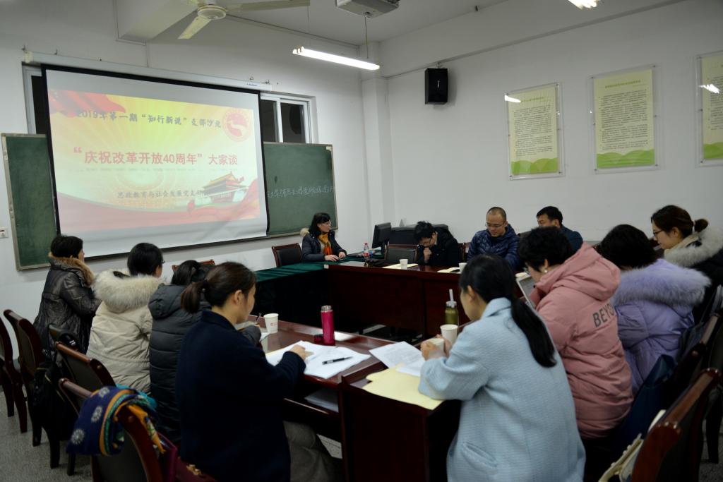 1月7日下午,在学院102会议室,思政教育与社会发展党支部召开了2019年第一次支部会议。作为马克思主义学院第一期“知行新说”支部沙龙主题活动之一,会议以“‘庆祝改革开放40周年’大家谈”为主题进行了学习。主题活动由支部书记厉云飞主持。学院党总支书记刘友女出席了活动。