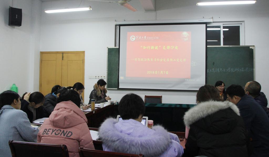 支部书记厉云飞首先对习近平总书记在“庆祝改革开放40周年大会”上的报告进行了回顾和提炼,使支部党员们更进一步深刻理解和把握了习总书记讲话的重要精神。同时,结合《中共宁波市委教育工委关于加强高校思想政治理论课质量建设的实施意见》,支部11名教工党员均发表了自己的感言和对思想政治理论课教学改革创新的探索经历及进一步设想。