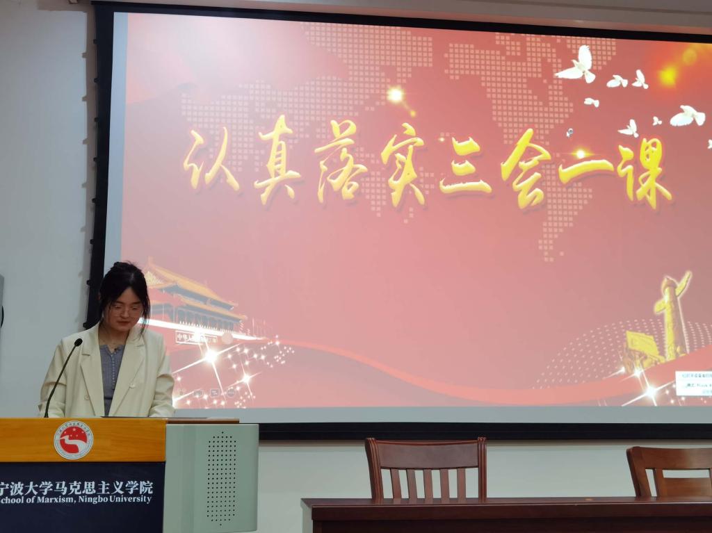 会上,研究生思政党支部组织委员徐涵琪首先讲解了《中国共产党支部工作条例》的背景和意义,就《条例》内容进行了逐条分析与解读。她表示,《条例》作为中共党史上第一部关于党支部工作的基础主干法规,是新时代党支部建设的基本遵循,每个党员都要认真学习。研究生马原和国外马党支部支部书记耿可欣围绕“三会一课”专题,结合自身党建工作经历,向大会作题为《认真落实“三会一课”》的精彩汇报。她认为,坚持“三会一课”制度,可以使党员经常接受党性教育,提升政治觉悟,提高工作水平,从而适应新形式,更好地完成党的各项工作任务。
