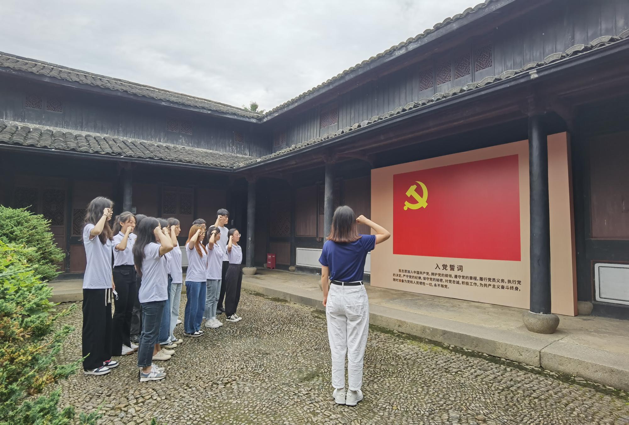 第二站是浙东区党委旧址,新党员进行“入党宣誓”仪式。学习浙东人民在党的领导下前仆后继、英勇斗争的过往故事和革命先烈敢于牺牲、不怕困难、艰苦奋斗的革命精神。在这里,17名今年新发展的预备党员进行“入党宣誓”仪式。鲜红的党旗,铿锵的誓词,庄严的承诺,昭示着a片