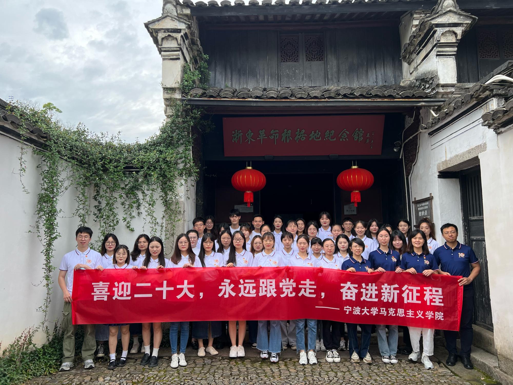 党总支组织师生党员赴余姚市横坎头村开展“喜迎二十大永远跟党走奋进新征程”主题党日活动,学院组织员、党建辅导员、团委书记和班主任等教师代表以及40名学生党员参加了此次活动。